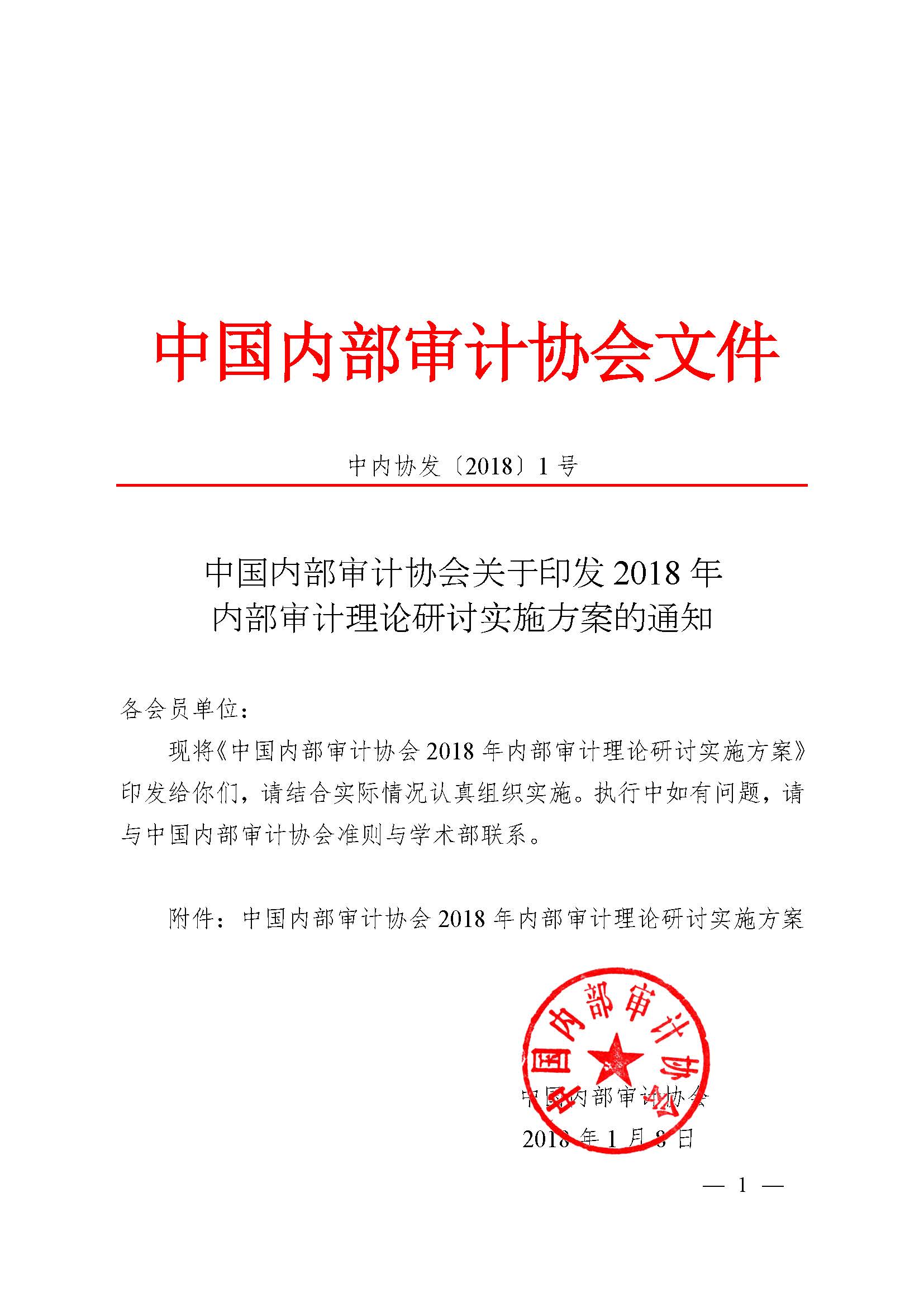 中国内部审计协会关于印发2018年内部审计理论研讨实施方案的通知