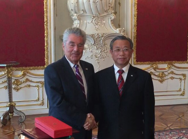据悉,“奥地利共和国国家功勋大金质绶带勋章”是奥地利最高级别的国家荣誉之一。此前,联合国前秘书长安南、德国总理默克尔、欧洲议会议长舒尔茨曾获得过此项勋章。
