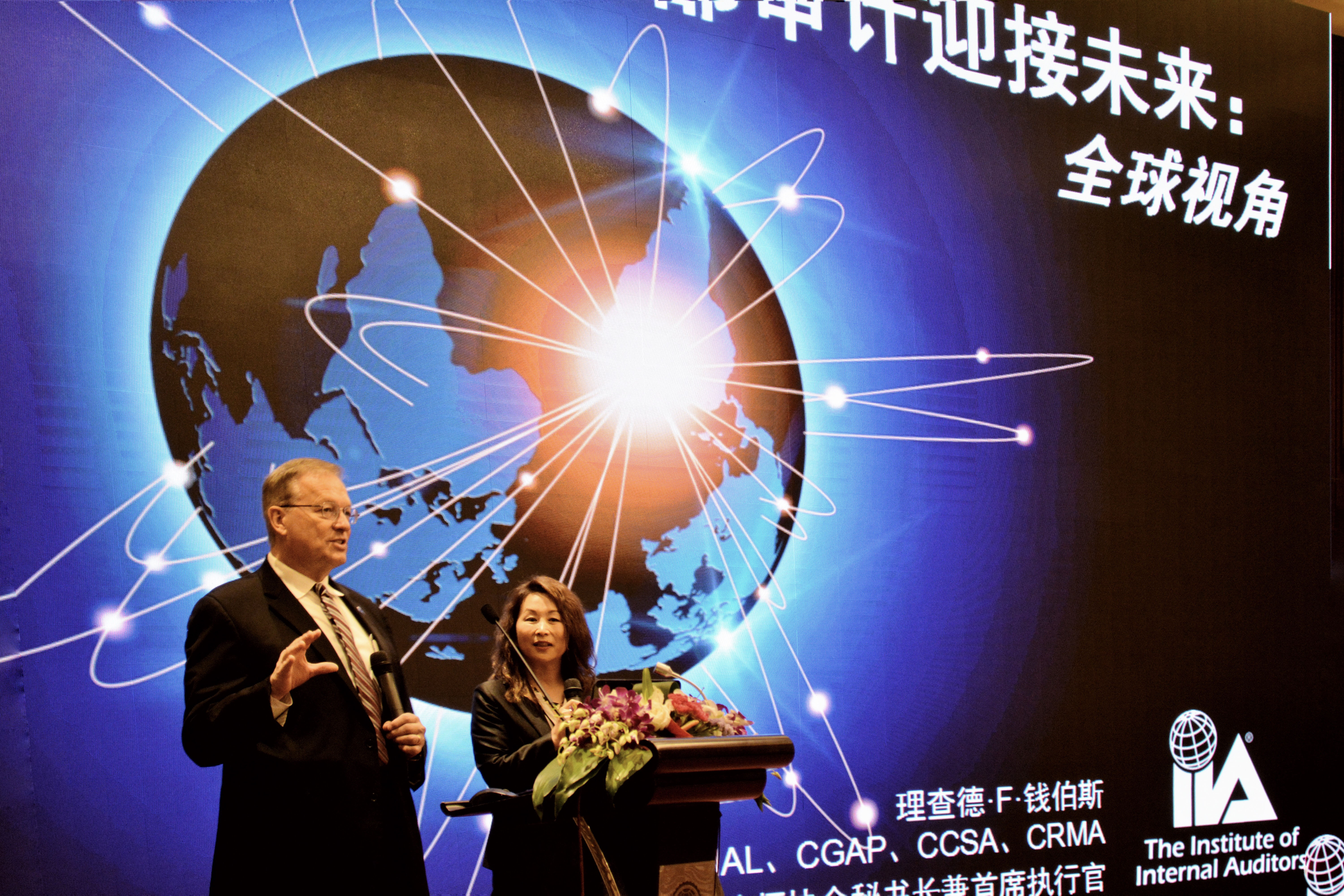 国际内部审计师协会秘书长兼首席执行官理查德·钱伯斯先生在8月1日和4日上午就内部审计职业的发展趋势和内部审计人员如何成为组织内部值得信赖的顾问做了主题演讲。钱伯斯先生在演讲中罗列了详实的数据,反映了内部审计人员和利益相关者对与内部审计相关关键问题的看法,分析了内部审计发展的趋势和前景。在此基础上,钱伯斯先生提出了内部审计迎接未来必须实施的五大战略,要求内部审计人员听取客户的声音,工作更加灵活和富有弹性,建立合理的人才队伍,革新工作流程,提升内部审计的形象,充分做好迎接未来挑战的准备。钱伯斯先生还以他的两本著作为基础,结合自己丰富的审计工作经验,与参会代表分享了每位内部审计人员必须面对的七大关键问题,强调识别、建立和维持利益相关者的关系、学会追踪组织风险、保持良好的职业道德等的重要性;分享了如何成为值得信赖的顾问,从个人特征、关系特征和职业特征三个方面介绍了值得信赖的顾问所应具备的品质。