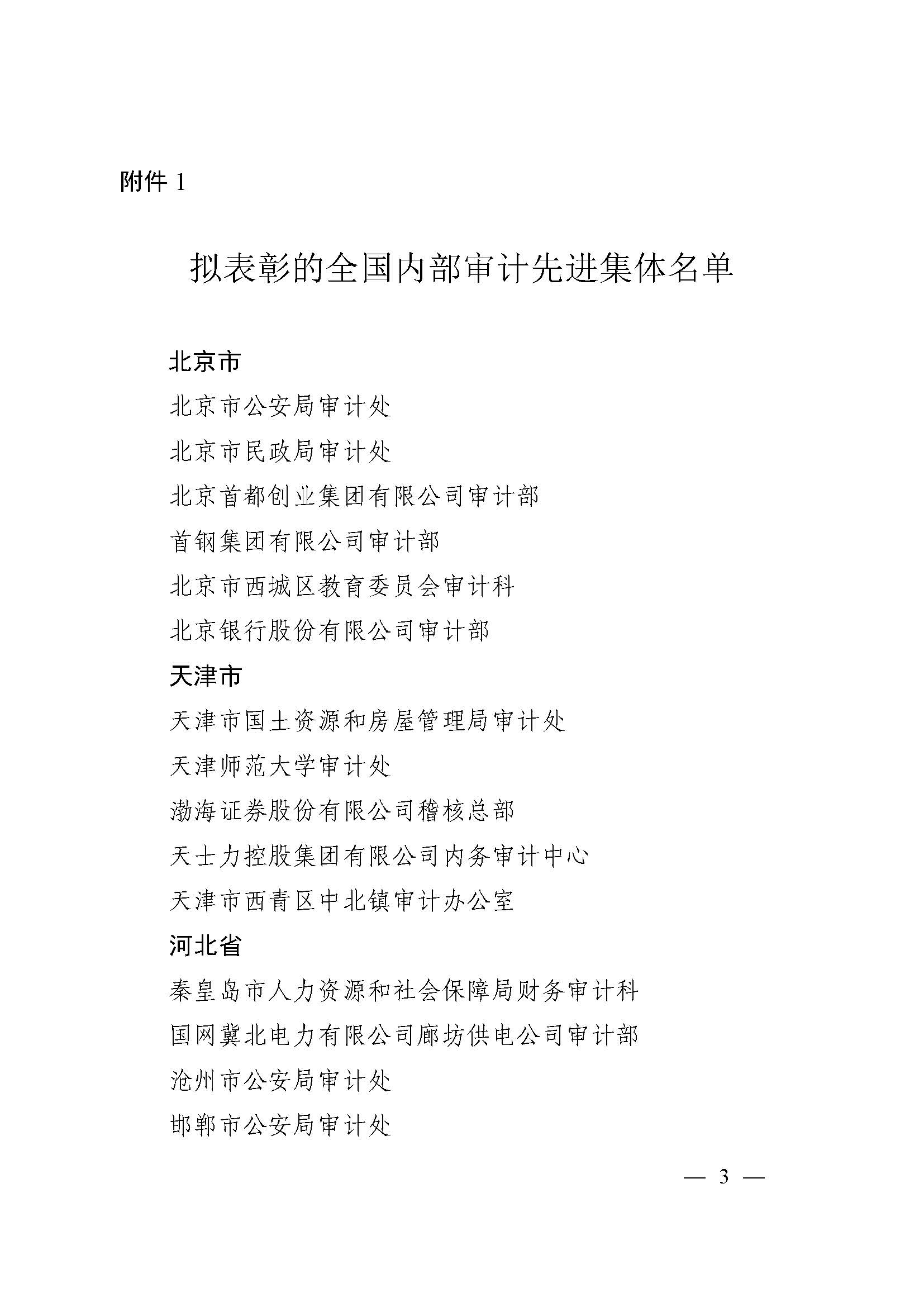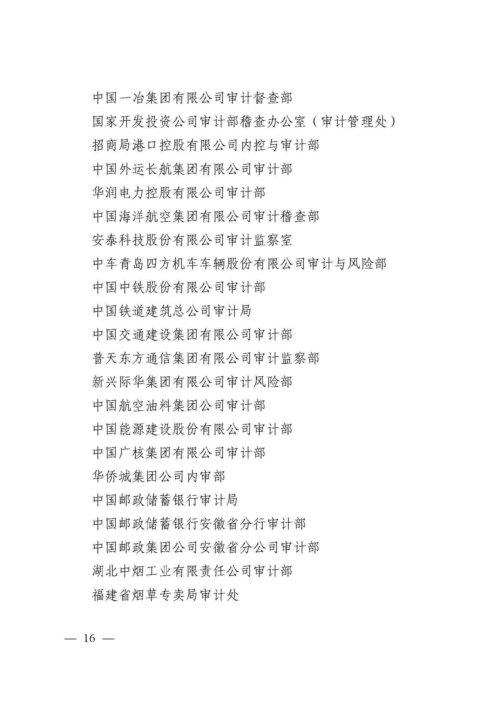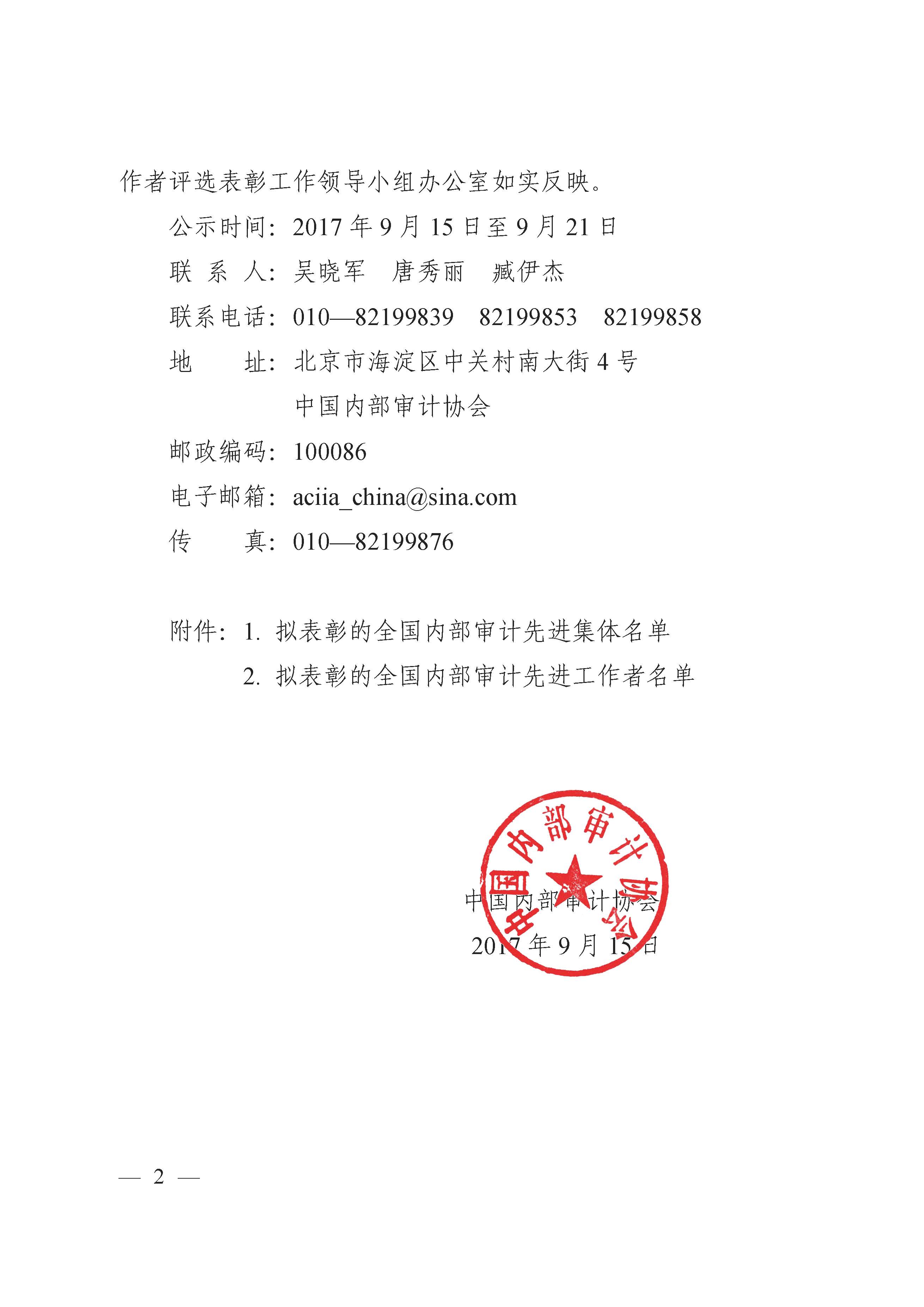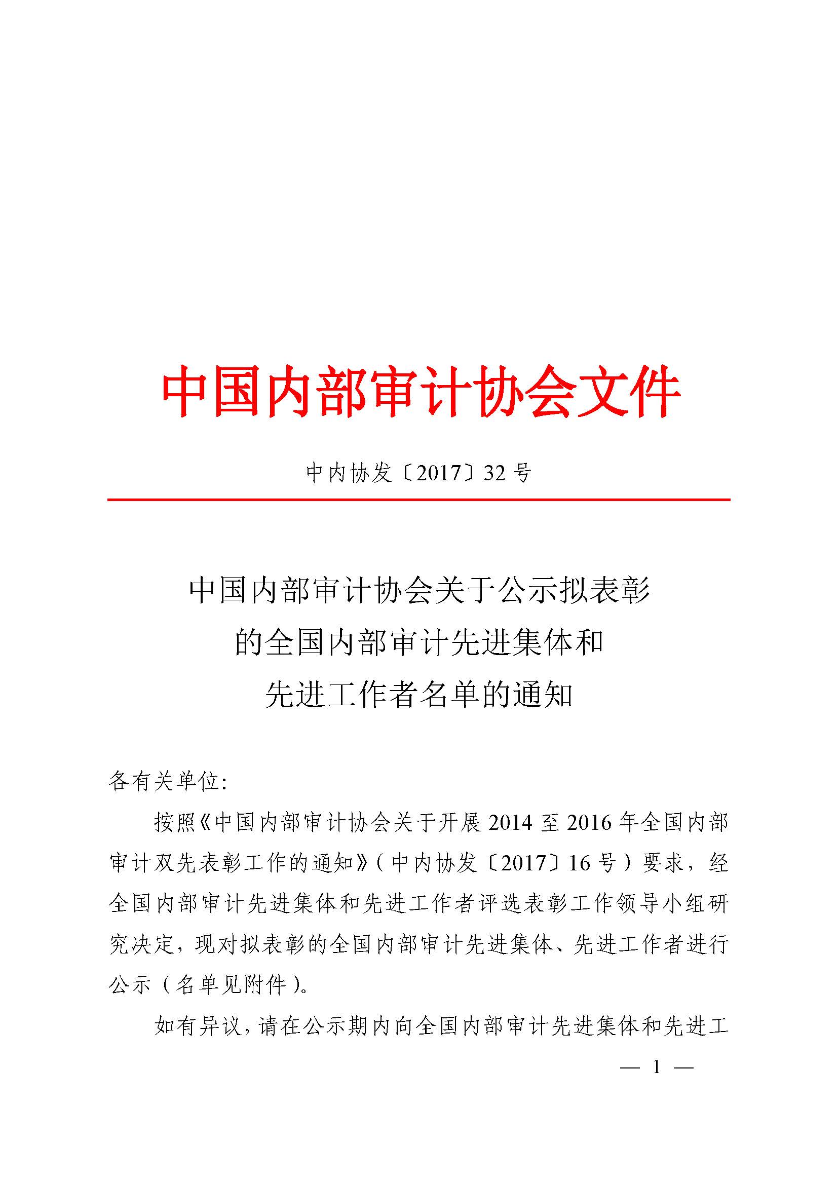 中国内部审计协会关于公示拟表彰的全国内部审计先进集体和先进工作者名单的通知