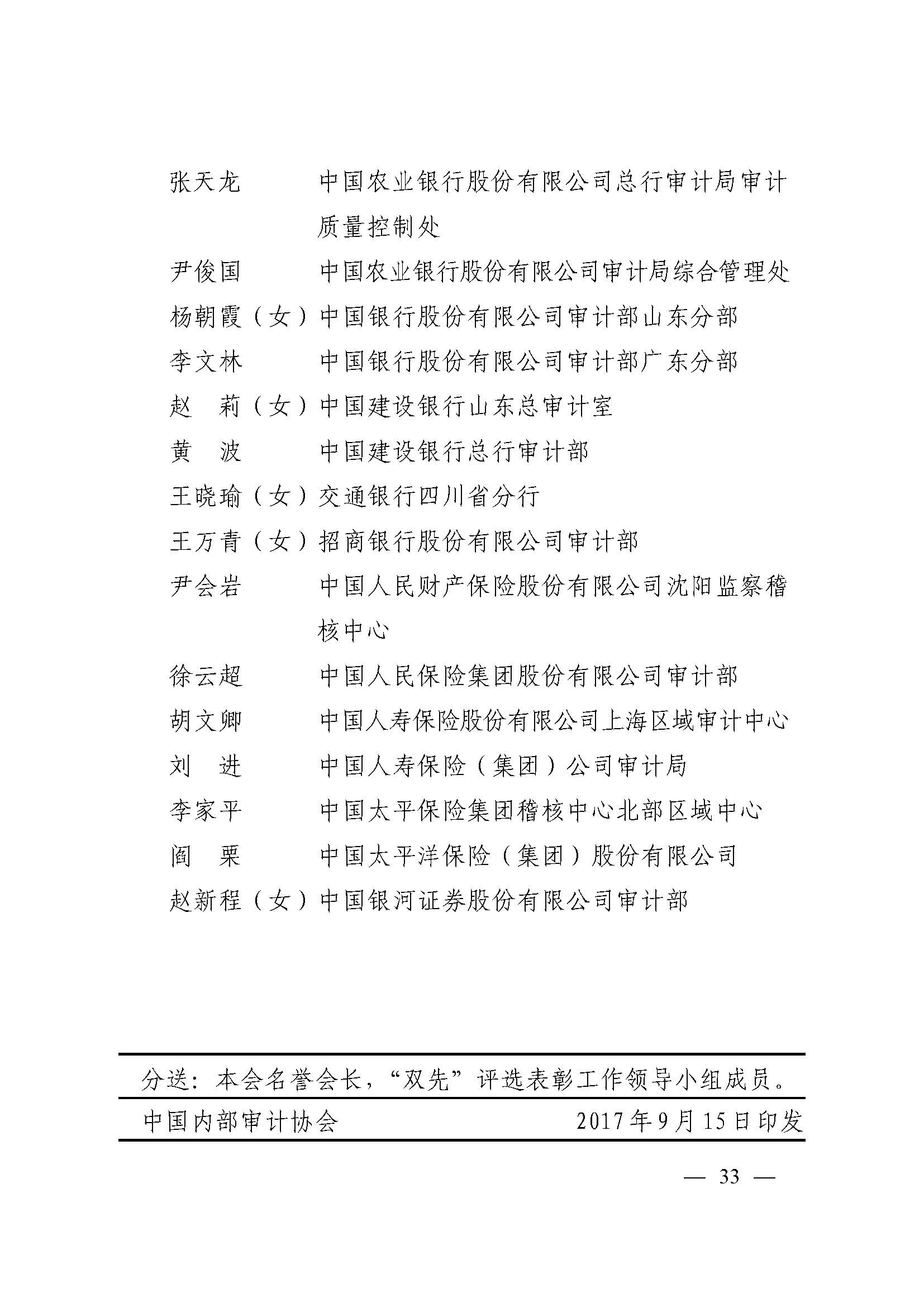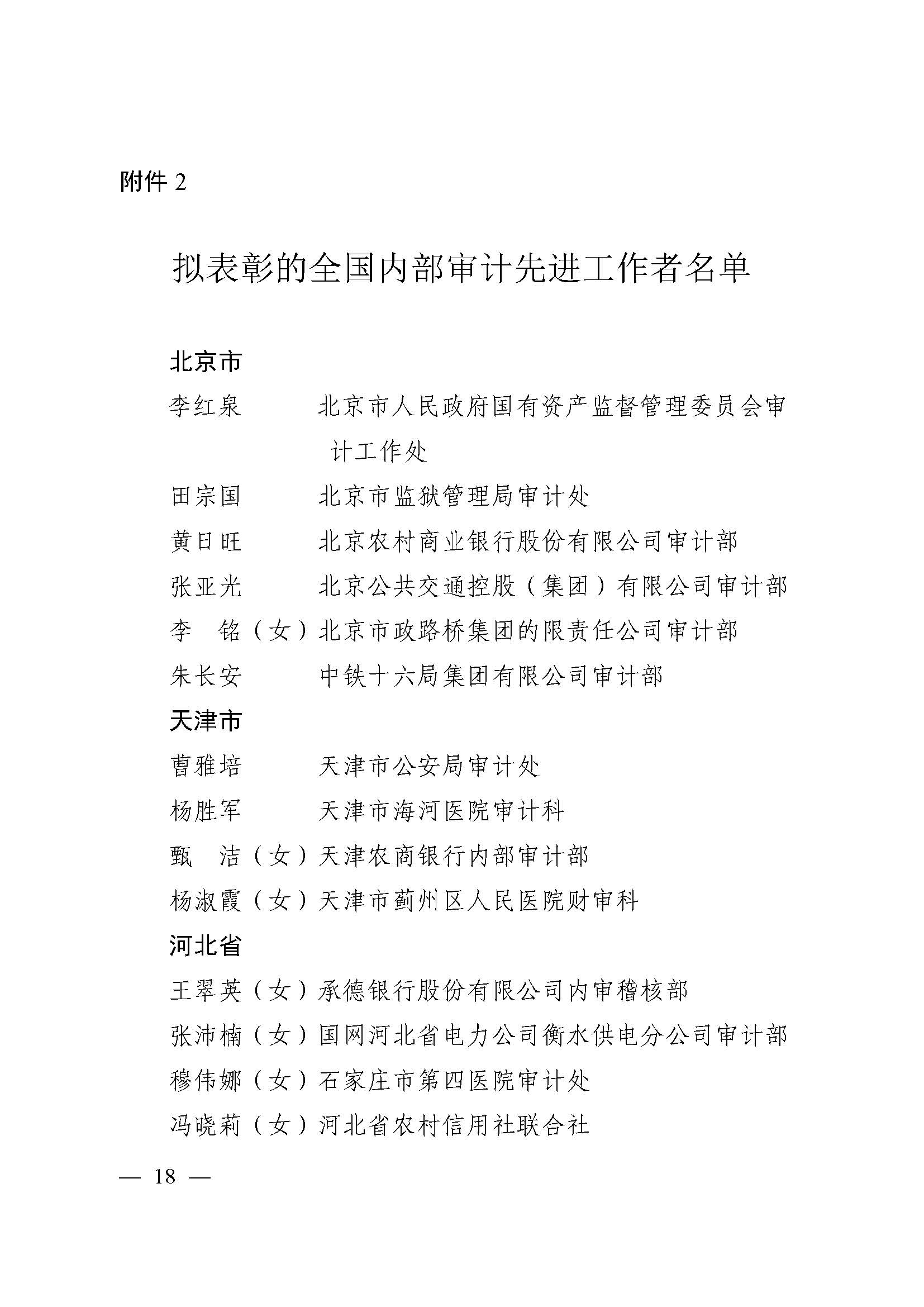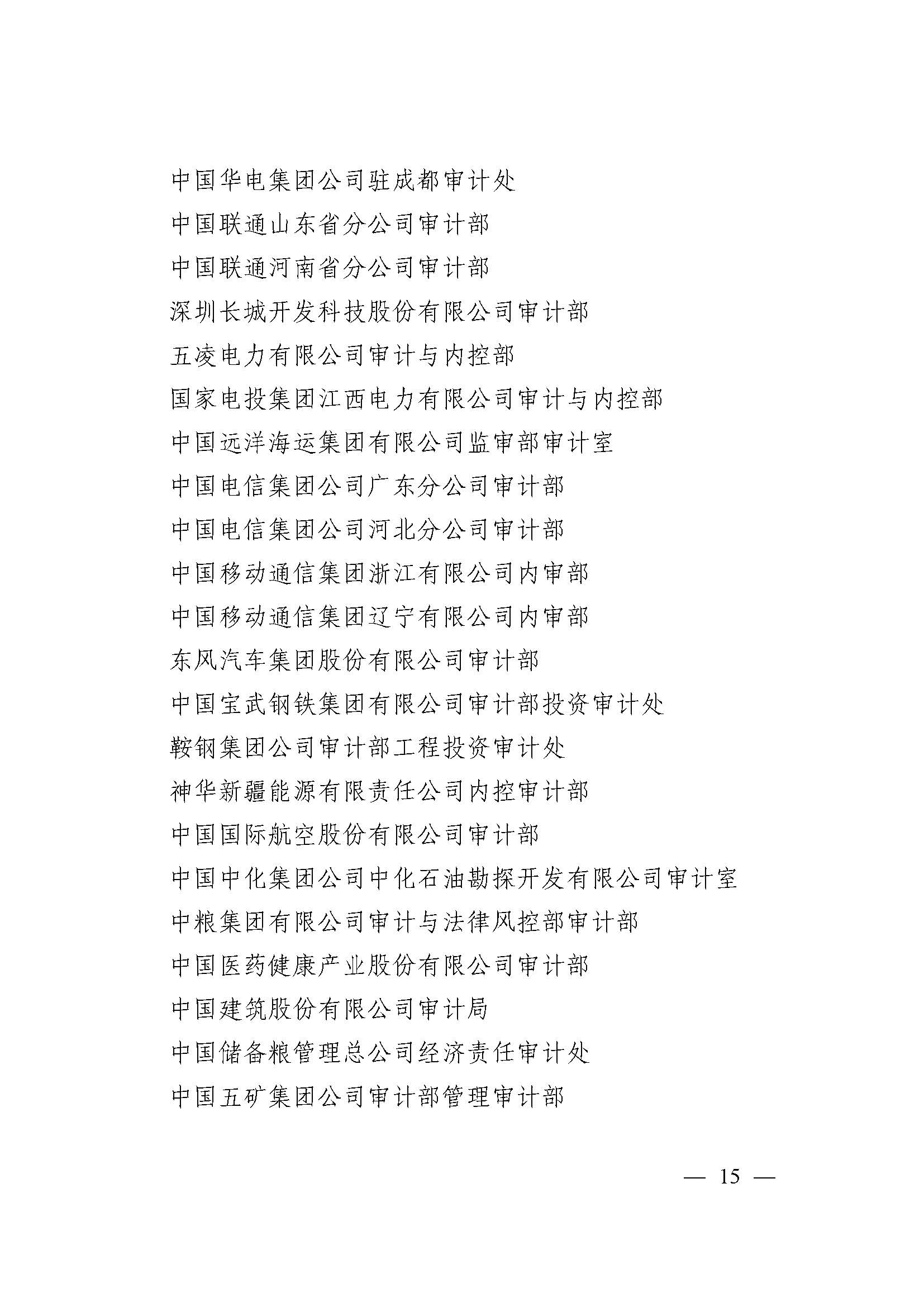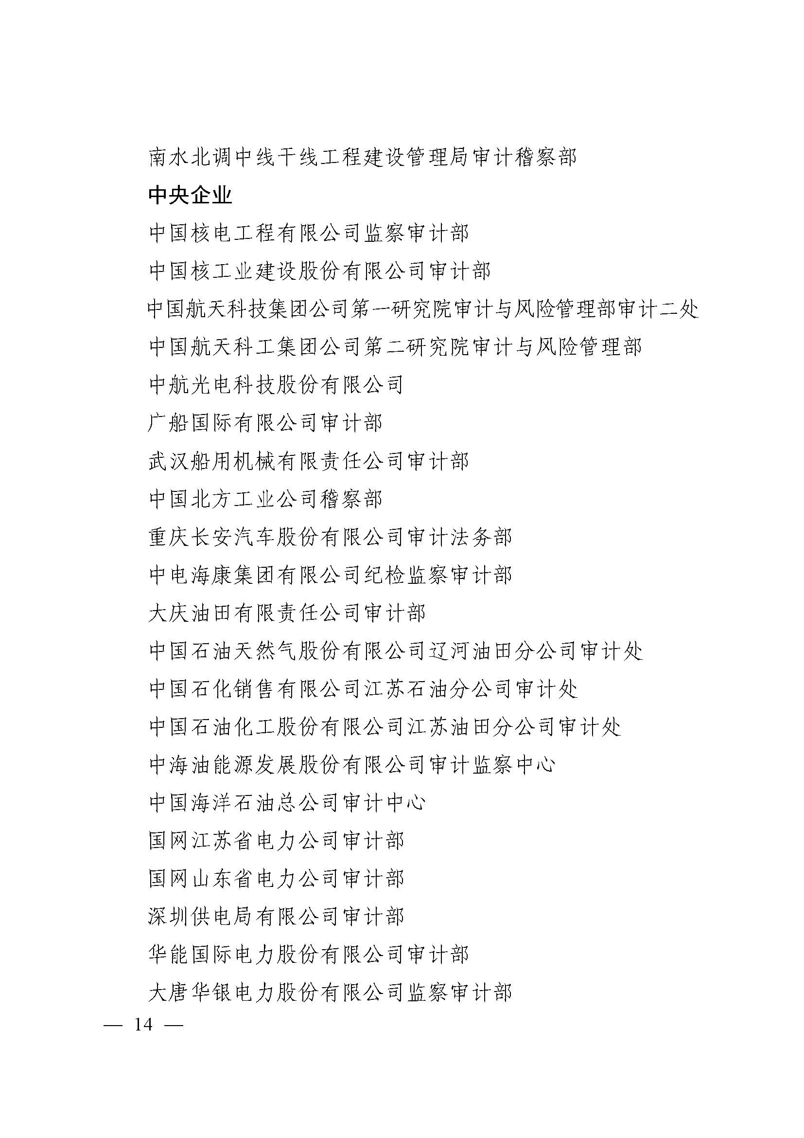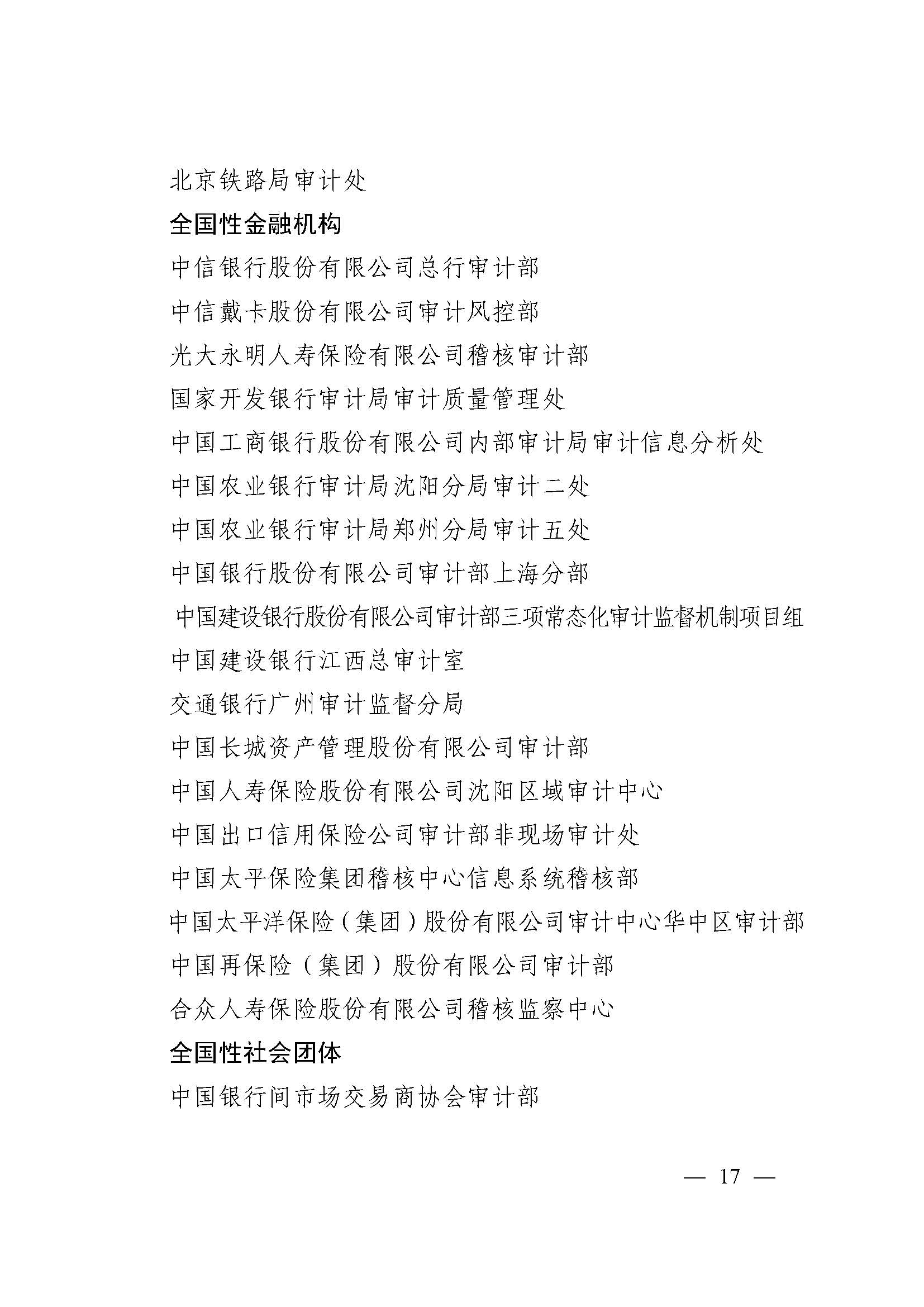 中国内部审计协会关于公示拟表彰的全国内部审计先进集体和先进工作者名单的通知