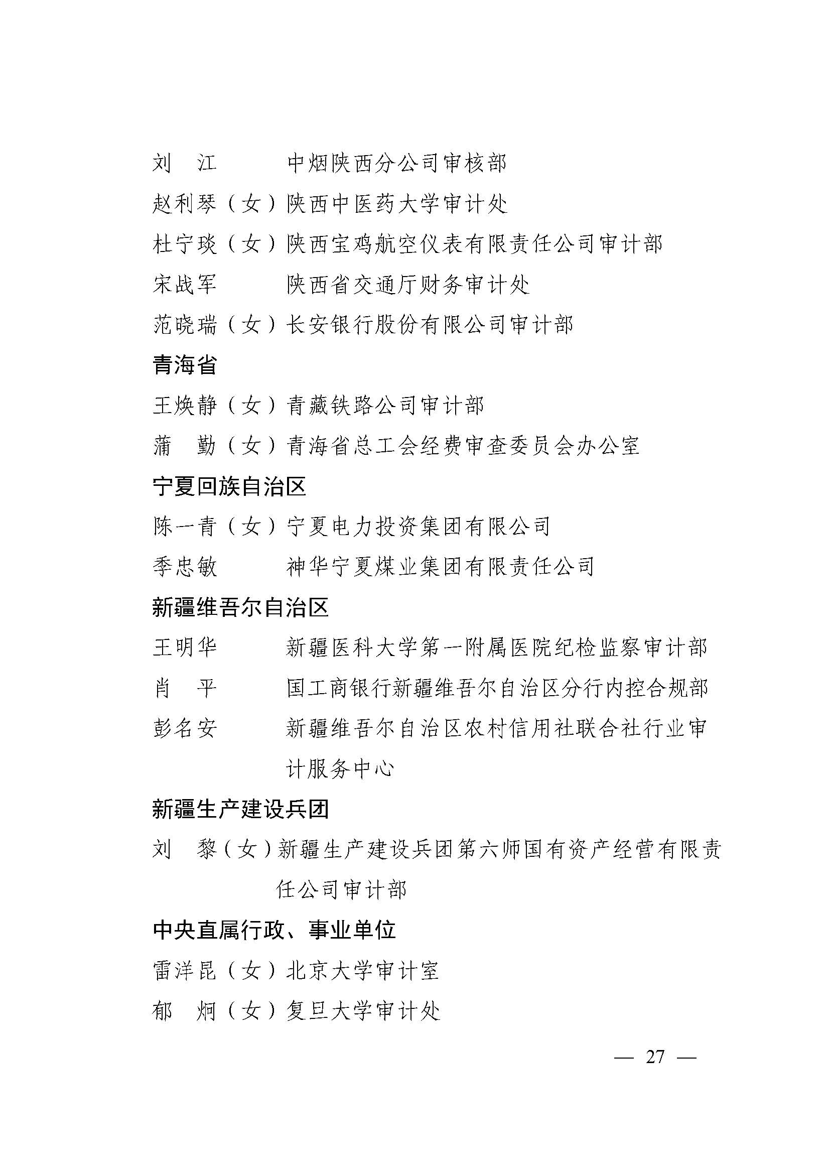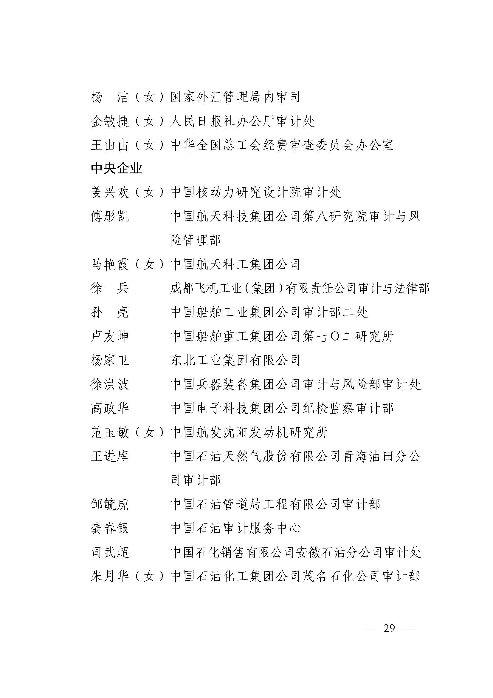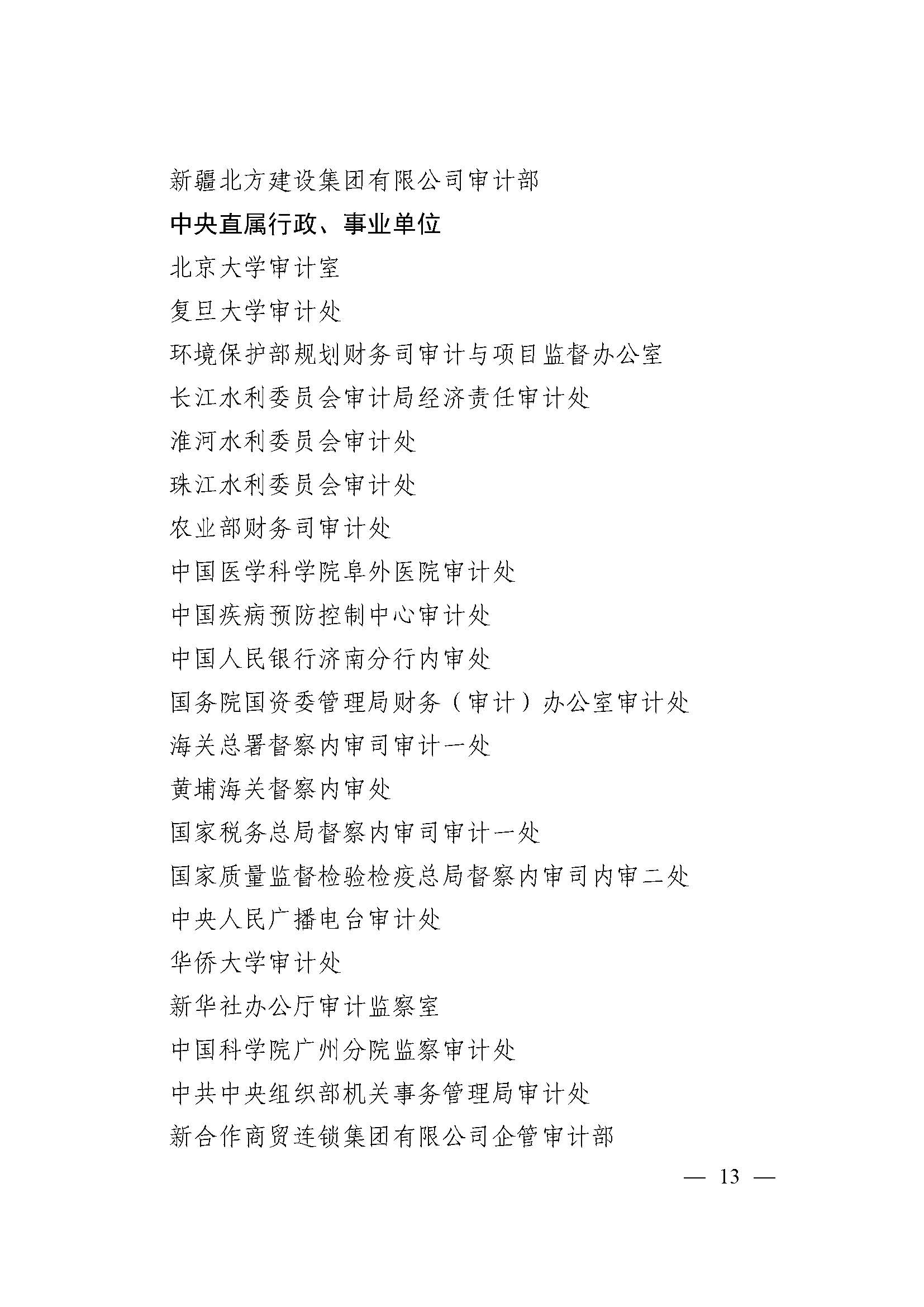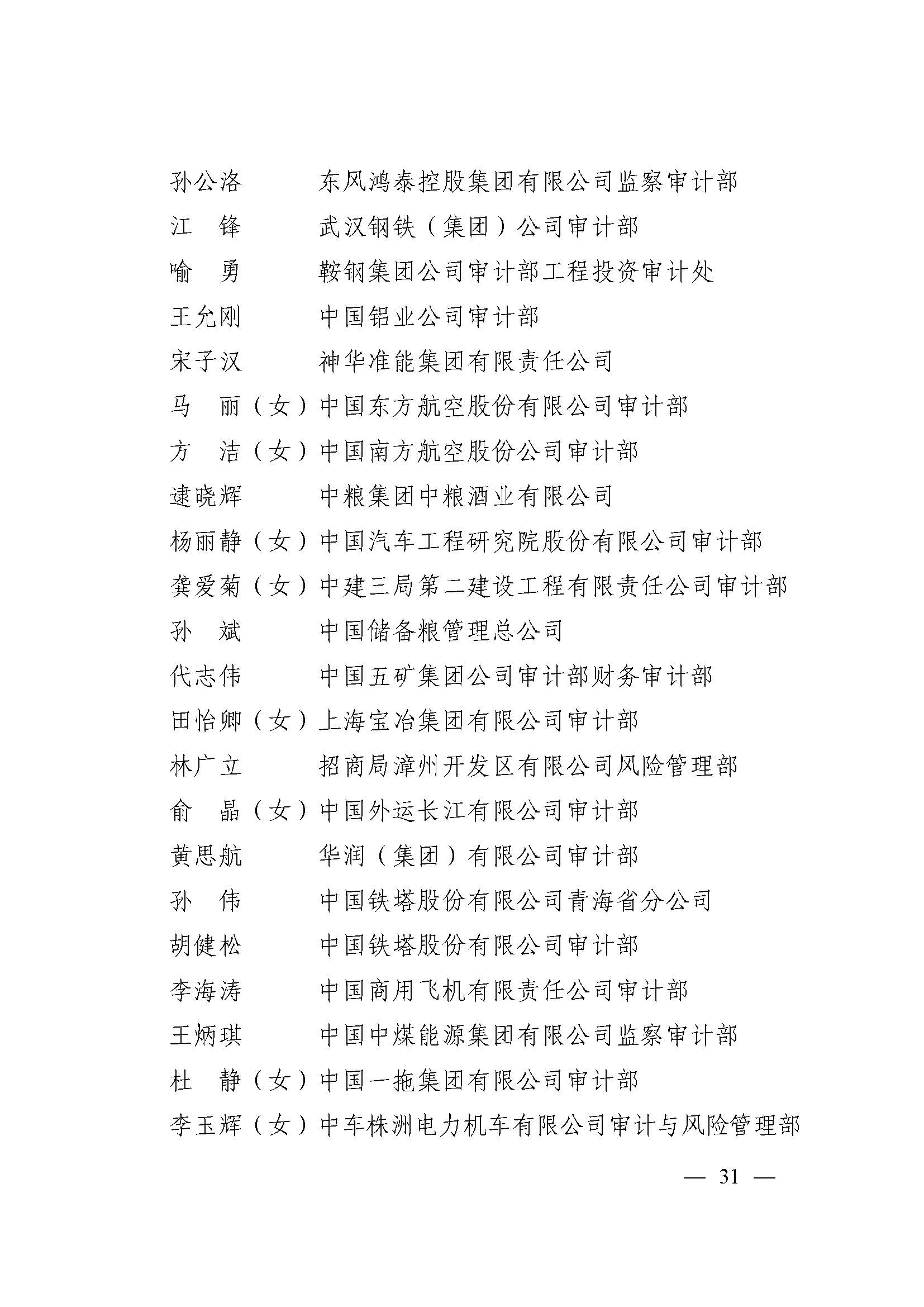 中国内部审计协会关于公示拟表彰的全国内部审计先进集体和先进工作者名单的通知