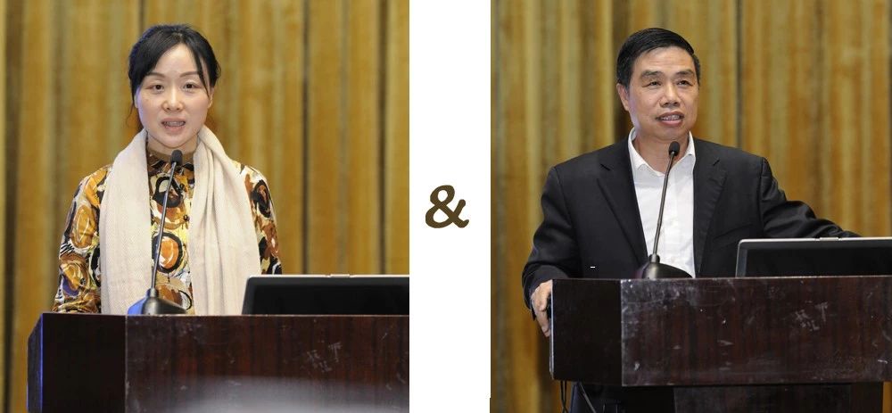 图为武钢集团有限公司审计部经理龙善红介绍优秀成果,北京理工大学管理与经济学院会计系主任陈宋生点评