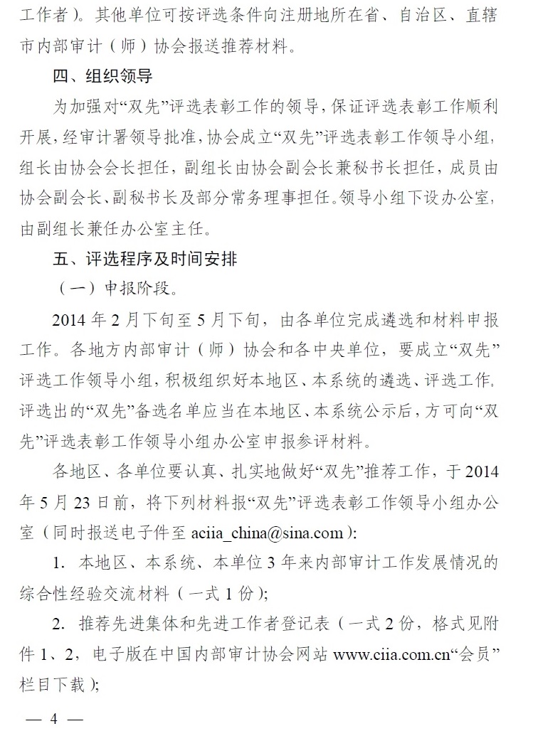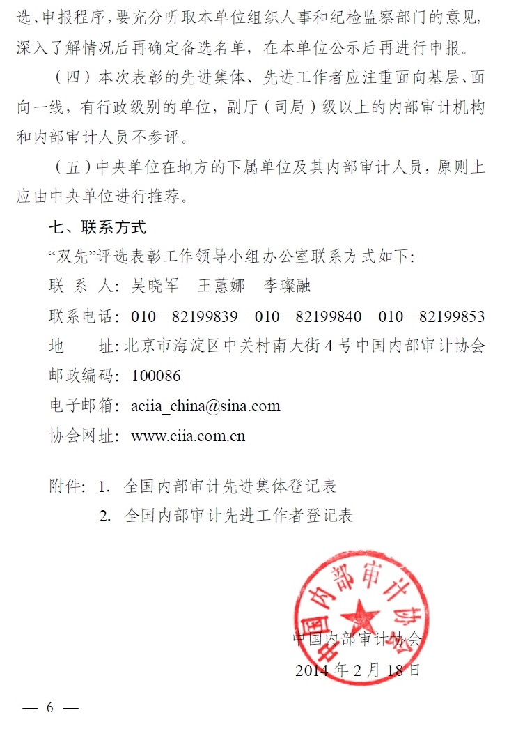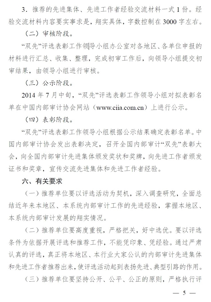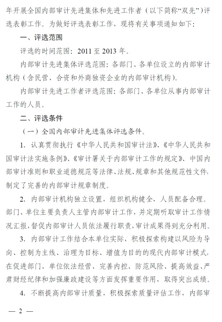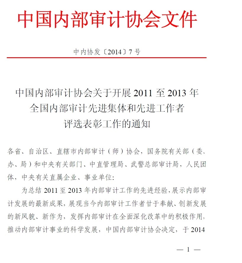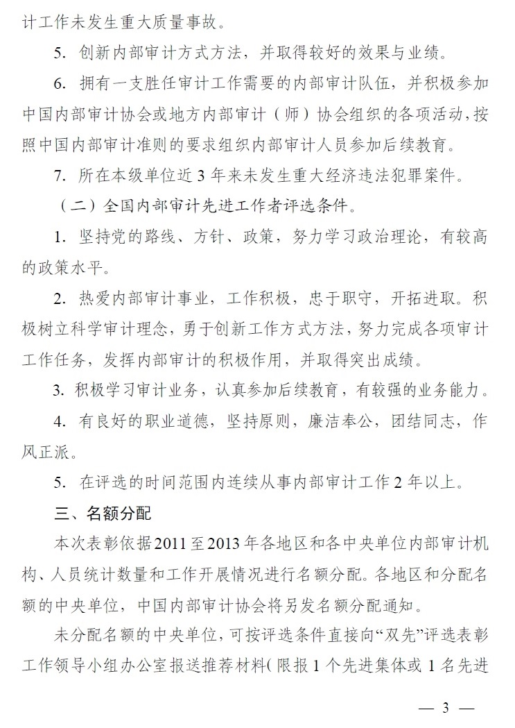 通知完整版请点击下载:中国内部审计协会关于开展2011至2013年全国内部审计双先表彰工作的通知