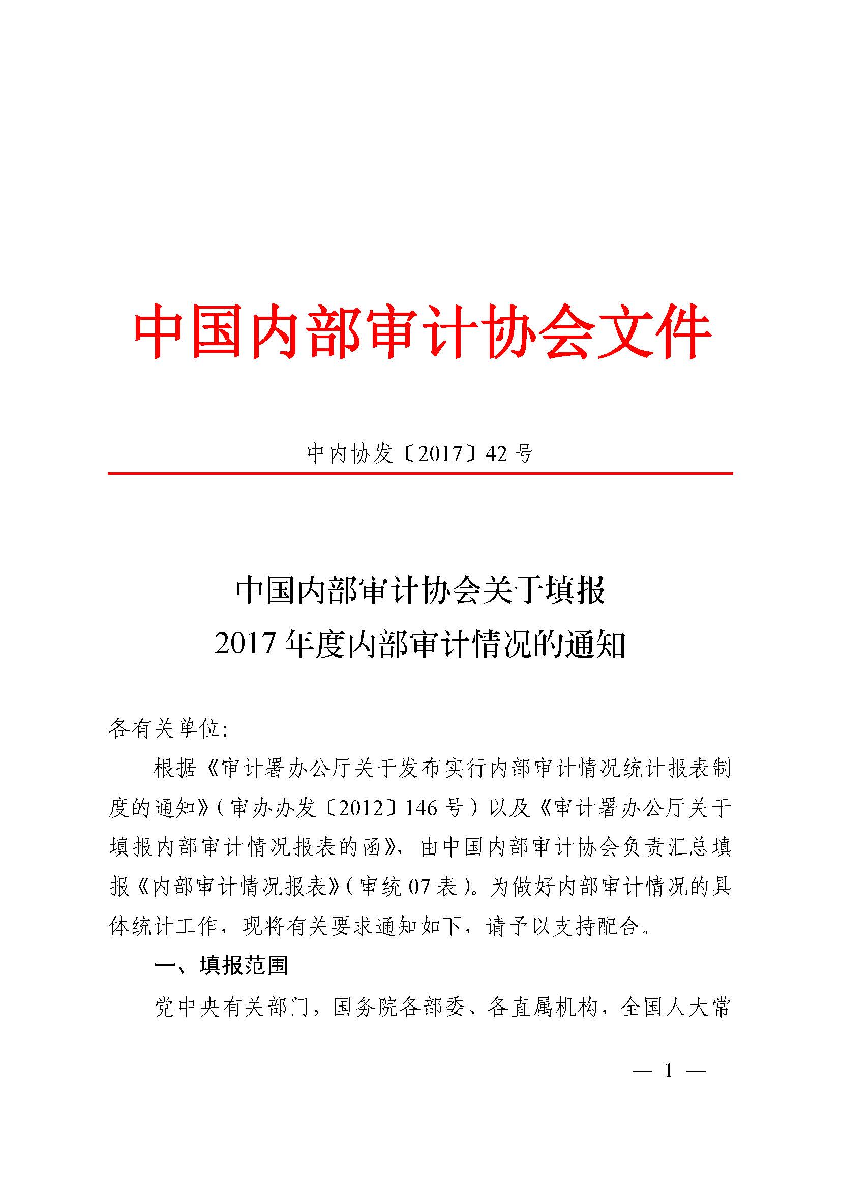 中国内部审计协会关于填报2017年度内部审计情况的通知